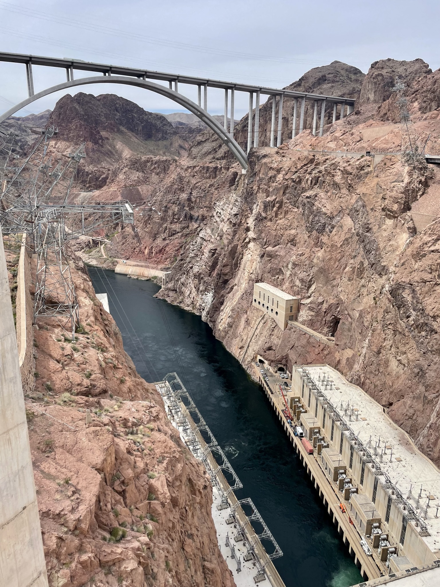 It was 30 degrees outside on a bright morning as we left the Grand Canyon area and headed south to get back to the highway west. On a personal note, I have to applaud the Loves Travel centers that have these fantastic long windshield squeegees. They have removed a margin of anxiety for folk like me. But… I digress. Our first stop today was at a magnificent engineering marvel, the Hoover Dam. The sheer size of it is amazing, and the fact that it was built nearly 100 years ago blows my mind. How in the world did they figure it out? Seriously? Thank God for people that are smarter than me – there sure are A LOT of them! We were also quite impressed by the bridge over the dam, and the beauty of Lake Mead. From there, we sprinted into Las Vegas, as Stacey simply could not wait any longer. Truth be told, we aren’t Vegas kind of folk, but we wanted to experience a bit of the hype. Melissa found us awesome parking at Paris Casino, and we walked through the lobby and found a lunch spot on a beer garden patio outside overlooking the Bellagio! Ten minutes after we sat down, we watched the fountain show from the front row. AWESOME! After lunch we pulled a few obligatory slots and made our way out of town. Incredible city, just not really our cup of tea. During our crossing of the Mojave Desert, we saw so many unique Joshua Trees, and settled in for the night in Barstow. Tomorrow we find ourselves in Paso Robles to sample the wines of the Central Coast. Yay!🍷🇺🇸