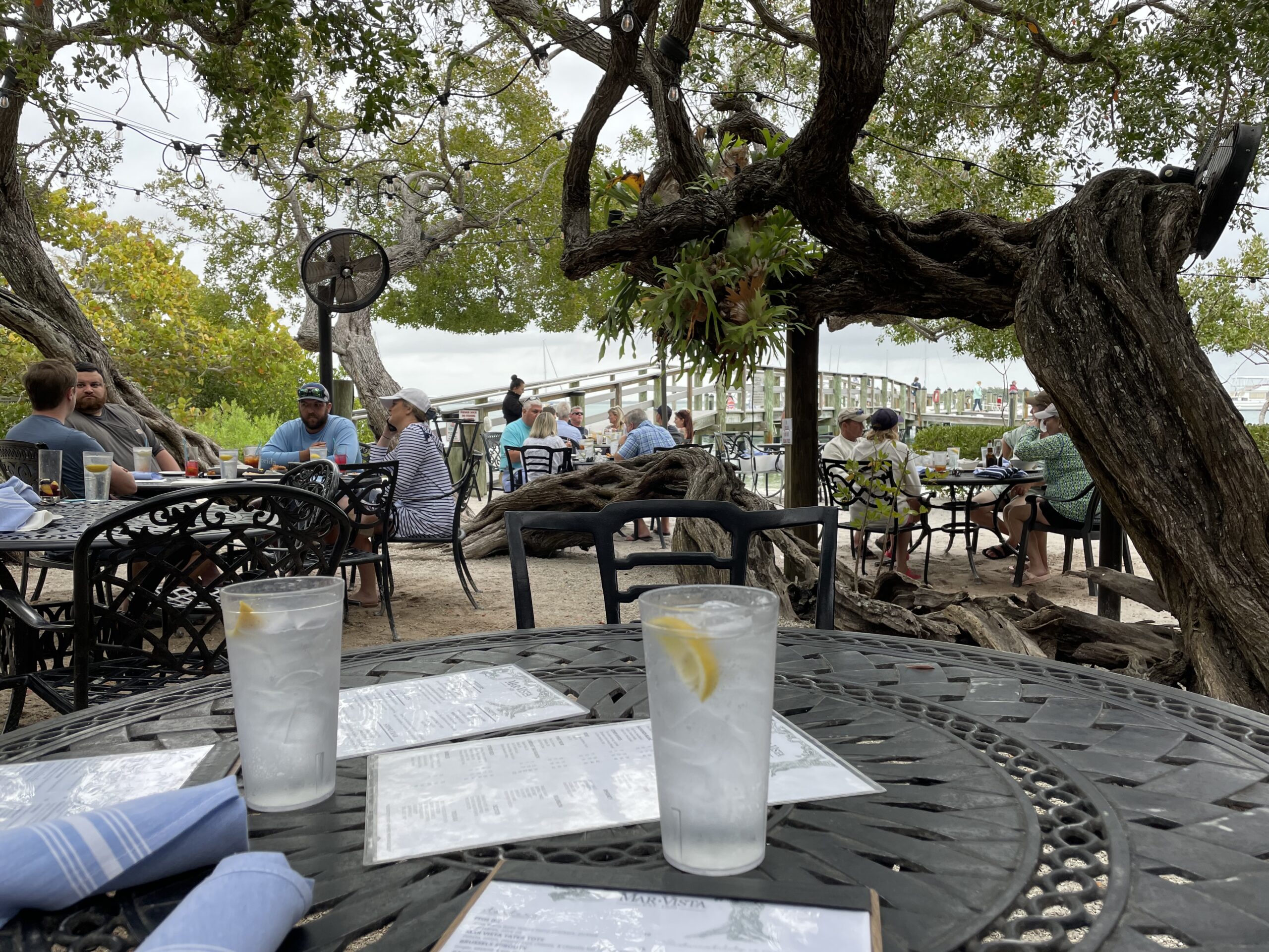 Friday was the longer day, covering almost 600 miles to our hotel just outside of the Kings Bay Naval Station in Georgia. The last 200 miles included extremely heavy rain that had the windshield wipers in overdrive. That kind of driving is tiresome, and once we were in the room, we never left until the sun came up the next morning. We crossed into Florida early Saturday morning and enjoyed a pleasant drive without rain, arriving on LBK at halftime of the Villanova hoops game. Tim is here, and we watched Nova gut out an important win over Providence on the road to hopefully nudge them closer to the right side of the Madness bubble. We had a late lunch at Mar Vista, where the seafood chowder is simply superb. I’ve never seen as much boat traffic and boat customers as we did there yesterday. ‘Tis the season!